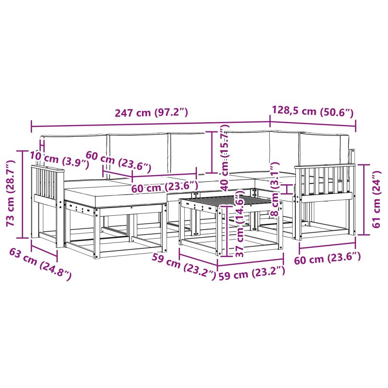 Този градински комплект съчетава стил и функционалност, превръщайки се в настояща атракция за всяка градина или тераса. С модерен дизайн, с ясни линии и минималистични детайли, той носи елегантност, която е идеална за комфорт и социални срещи на открито. Направен изцяло от масивна акациева дървесина, комплектът предлага дълготрайност и красив външен вид, което го прави перфектен за тези, които търсят практичност, комбинирана с изчистен дизайн. Издръжлив масивен акациев дървен материал: Направен от масивна акациева дървесина, този комплект е супер устойчив на всякакви условия навън и с надеждна конструкция за дълготрайност. Топлият естествен тон обогатява градината или терасата. Устойчив на времето дизайн: Лакираната му повърхност добавя допълнителна защита срещу слънце и дъжд. Полированный завършек запазва и вида, и функционалността, така че мебелите ще ви служат дълго. Компоненти и дизайн: Всеки елемент - от подлакътниците до облегалките - е проектиран с мисъл за стил и комфорт. Координираният дизайн предлага визуално приятно излъчване, подходящо за всякакви открити събития. Комфорт и многофункционалност: Гъвкавият модулен дизайн позволява различни конфигурации, идеални за всичко - от почивка до социални събирания. Този комплект лесно се адаптира към всякакви пространства. Лесна грижа и поддръжка: За да поддържате мебелите в отлично състояние, просто ги почиствайте с влажна кърпа и избягвайте груби химикали. Редовната поддръжка помага да запазите външния им вид и удължава живота.