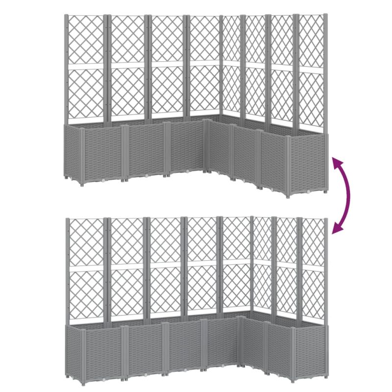 Този градински сандък с пергола е отличен избор за увивни растения във вашата градина, вътрешен двор и тераса. Издръжлив материал: Полипропиленът е популярна пластмаса, която също е един от най-използваните материали при мебелите за открито. Той е лек, здрав и устойчив на удар.Щедър капацитет: Външната кашпа осигурява много място за отглеждане на всички ваши зеленчуци, цветя и други растения.Практичен дизайн: Идеалният долен слой помага за задържане на влагата и позволява лесен дренаж. Освен това интегрираната пергола предлага страхотна опора за отглеждане на увивни растения като домати, грах и рози.Модулен дизайн: Този сандък се състои от 7 кутии за цветя, които могат свободно да се комбинират според вашите нужди.Красива визия на ратан: Плантерът за вътрешен двор е проектиран с визия на ратан, внасяйки елегантен чар във вашето жилищно пространство.