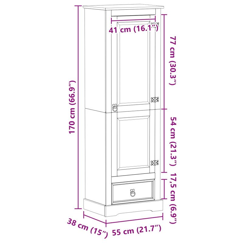 Този стилен рустикален гардероб е страхотно допълнение за всяка спалня. С формата си и приятните си линии, той се вписва отлично навсякъде и добавя рустикален шик с дървесния си финиш. Идеален е за подреждане на дрехи, обувки и всичко нужно, осигурявайки удобство за всеки собственик. Масивна борова дървесина: Гардеробът е изработен изцяло от масивна борова дървесина, известна със здравината и атрактивния си вид. Този материал осигурява дълготрайност и внася усещане за природа у дома. Щедри възможности за съхранение: С пространствените отделения, той предлага много място за всички ваши нужди. Идеален е за съхранение на рокли, пуловери и др. Рустикален стил: Рустикалният дизайн подчертава естествената красота. Матова повърхност, която се вписва чудесно в различни декорации, от класически до модерни стилове. Практични материали: Всеки компонент - от вратите до панелите, е направен от масивна борова дървесина, съчетаваща качество и функционалност, перфектен за ежедневна употреба. Лесна поддръжка: Просто избърсвайте с влажна кърпа, за да поддържате гардероба. Лесно е и запазва естествения блясък на дървото дълги години.