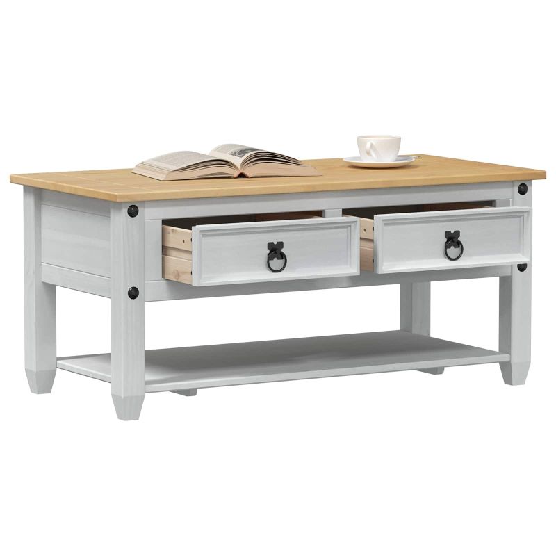 Масичка за кафе Бяло 100 x 48 x 45 см Масивна борова дървесина