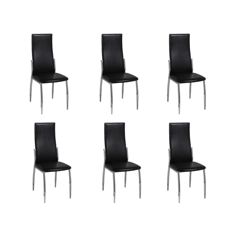 Тези 6 модерни трапезни стола се отличават с ергономичен дизайн за повече комфорт. Тези удобни трапезни столове имат висококачествена и здрава конструкция. Краката са изработени от здрава хромирана стомана, а седалките – от издръжлива изкуствена кожа, която се почиства лесно.