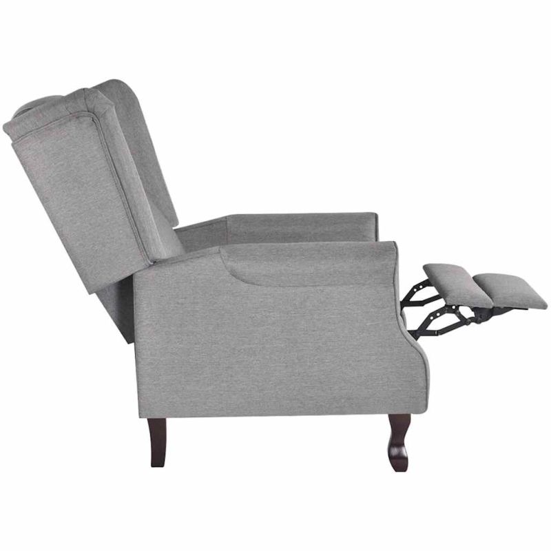 Това регулируемо кресло-реклайнер ще бъде чудесно декоративно допълнение към интериора на хола с класическия си дизайн. Този регулируем разтегателен фотьойл е идеален за възрастни хора. Облегалката може лесно да се наклони до удобна позиция, която да намали натиска върху гръбначния стълб. Това кресло има здрави дървени крака и е тапицирано с мек и удобен плат. Включената възглавница за седалката, подплатена с дунапрен, придава допълнително удобство. Регулируемото кресло е перфектен избор за чатене, четене, гледане на телевизия или просто за почивка. Максимално 110 кг на седалка. Съобразете се с риска от открит огън и други източници на силна топлина в близост до продукта.