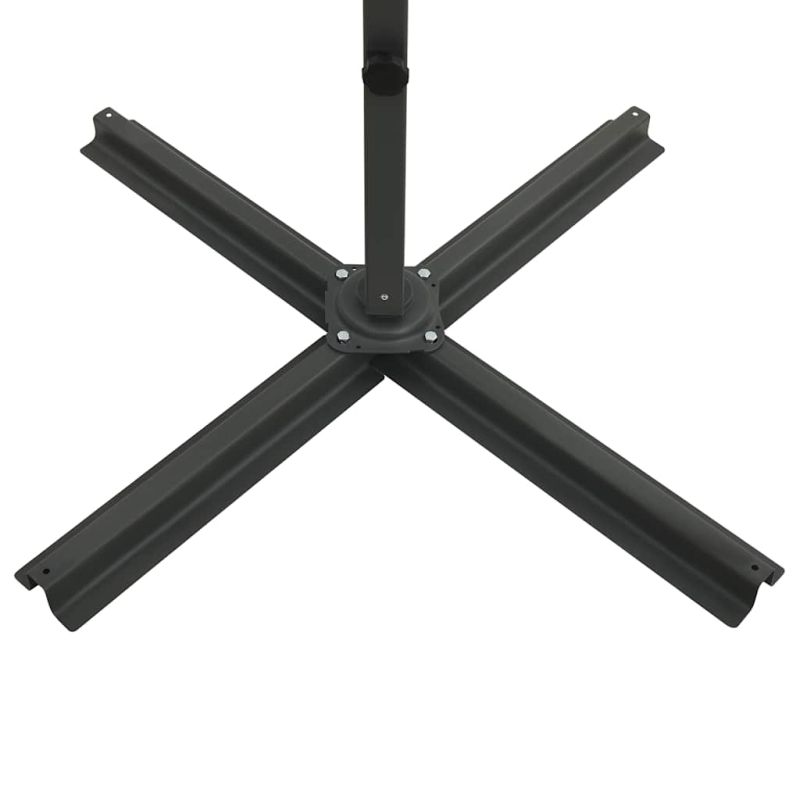 Този елегантен конзолен градински чадър с LED светлини е отличен избор за създаване на сянка и защита от вредните ултравиолетови лъчи на слънцето. Когато слънцето залезе, светодиодите ще осветят вашето външно жилищно пространство. Изработено от неизбледняващ полиестер, предпазващ от ултравиолетовите лъчи, покривалото на чадъра осигурява оптимална защита срещу слънцето и се почиства лесно. Той се доставя със здрава кръстата основа за допълнителна стабилност. Ексклузивният дизайн на градинския чадър ви позволява да го накланяте и завъртате на 360 градуса, за да блокирате слънцето от всякакъв ъгъл. Здравият алуминиев прът и 8-те издръжливи спици правят чадъра много стабилен и устойчив. Този градински чадър може лесно да се отваря и затваря благодарение на механизма с манивела. Освен това този чадър за вътрешен двор разполага с 24 светодиода за осветяване на вашето външно жилищно пространство и създаване на уютна и романтична атмосфера, когато слънцето залезе. Моля, обърнете внимание: препоръчваме да третирате тъканта на чадъра с хидроизолационен спрей, ако е подложена на обилни валежи. Важно е всеки продукт, който се сглобява с помощта на какъвто и да е вид винт, да се затегне отново 2 седмици след сглобяването и веднъж на всеки 3 месеца, за да се осигури стабилност през целия жизнен цикъл на продукта. Не затягайте напълно всеки винт, докато всички винтове не бъдат правилно фиксирани. По време на монтажа не допускайте деца в зоната на сглобяване. Работете внимателно с тежките части. Уверете се, че този продукт е напълно сглобен, както е показано на илюстрацията, преди да го използвате. Този продукт трябва да се използва само на твърда, равна земя. Уверете се, че продуктът винаги е поставен на равна земя. Не се поема отговорност за щети или наранявания, причинени от неправилна употреба на този продукт. Дръжте ръцете си далеч от механизма за сгъване и движещите се части, за да предотвратите евентуални наранявания. Никога не използвайте и не отваряйте този чадър без подходяща основа. Не използвайте този чадър по време на силен вятър и дъжд. Неспазването на това изискване може да доведе до телесни наранявания и/или повреди. Винаги затваряйте сенника и слагайте покривалото, ако вятърът се усили над „умерен бриз“, ако има снеговалеж или ако вали дъжд. Продуктът съдържа малки части, които могат да представляват риск за малки деца. Съхранявайте малките части на места, недостъпни за деца. Този продукт не е играчка! Уверете се, че децата не използват нито сенника, нито балдахина, нито основата за игра или катерене. Не използвайте открит огън (напр. градинско барбекю или скара) под или в непосредствена близост до този продукт. Ако скоростта на вятъра надвиши 6 м/с или при силен дъжд, внимателно премахнете продукта, сгънете го, закрепете го и го поставете на сигурно място. Ако тъканта неочаквано се намокри, подсушете я веднага, за да избегнете преждевременно стареене на продукта. Проверете преди употреба дали вашата шатра, палатка, чадър или павилион не са повредени (изкривени метални елементи, скъсана тъкан). В случай на повреда не използвайте продукта. Неспазването на тези указания може да доведе до щети.