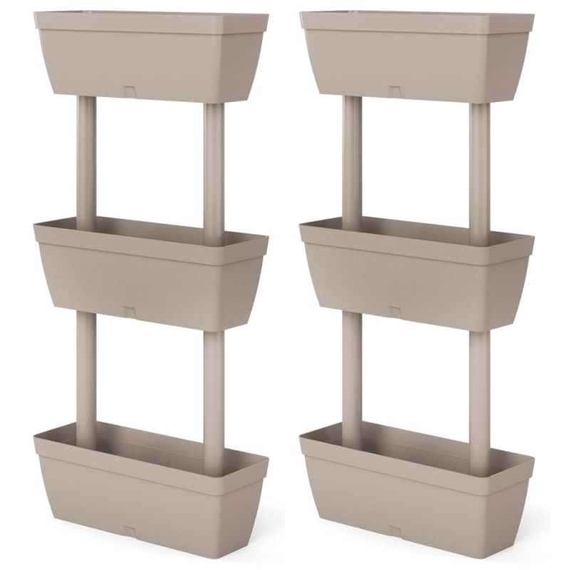 Независимо дали придавате цвят на голите и безцветни стени или оформяте терасата си с параван, можете да създадете свой собствен оазис на добро настроение с тази невероятна идея за подреждане на сандъци с цветя! Тази кашпи за двор са изработени от TPR (термопластична гума), което ги прави устойчиви на атмосферни влияния и UV лъчи и следователно много практични за целогодишна употреба на открито. Всяка от саксиите има резервоар за вода, за да предотврати едновременно пресъхване и преполиване. Можете да използвате градинските саксии, за да създадете очарователно кътче на вашия балкон или тераса, например с висящи цветя, растения с меки плодове, подправки и др. Тази система на практика може да се разширява до безкрайност, дори да се подреди под прав ъгъл! Освен това плантерите за тераса могат да се разширяват спрямо вашите идеи. Можете да съберете отделните сандъци заедно и така да създадете свой собствен дизайн. Един комплект съдържа 3 здрави саксии с резервоар за вода и четири колони, изработени от термопластичен материал.