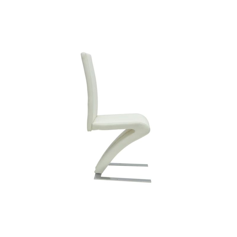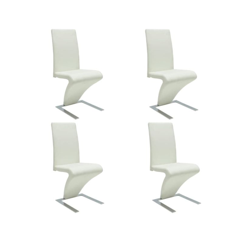 Този комплект от 4 стилни трапезни стола ще внесе ултрамодерен стил във вашата трапезария или кухня. Той се отличава с изключително актуален дизайн, благодарение на своите елегантни, изчистени линии и извивки. Издръжливата конструкция на тези столове ще ви осигури много години ползване. В допълнение, уникалната зигзагообразна форма с фино бяло покритие ще направи този комплект фокусна точка във вашата трапезария. Столовете разполагат и с ергономично оформени седалка и облегалка, което ви гарантира комфорт при седене. Доставката включва комплект от 4 бели стола.