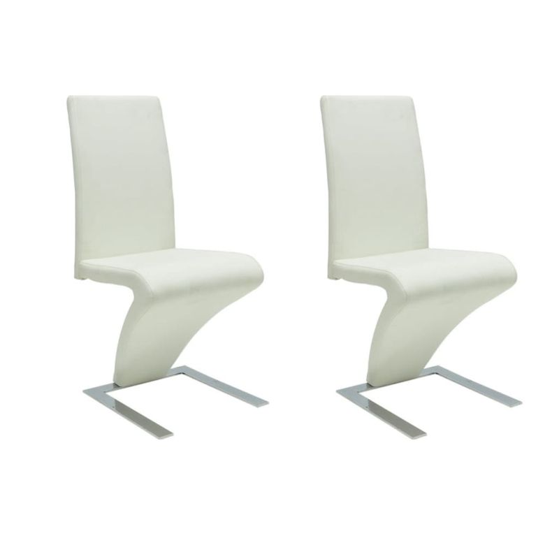Трапезни столове, 2 бр, бели, изкуствена кожа