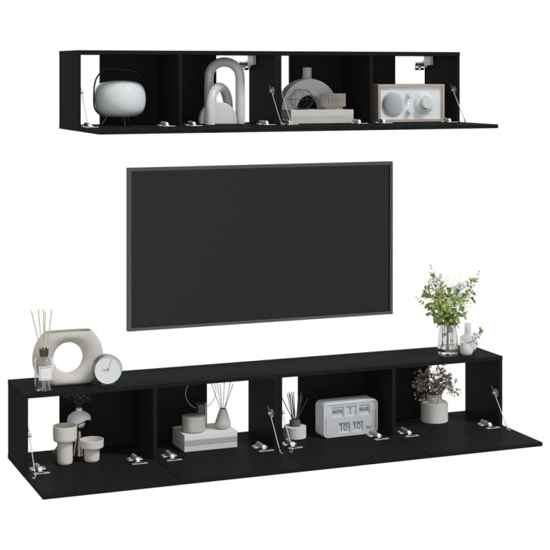 Комплект ТВ шкафове от 4 части, черно, инженерно дърво