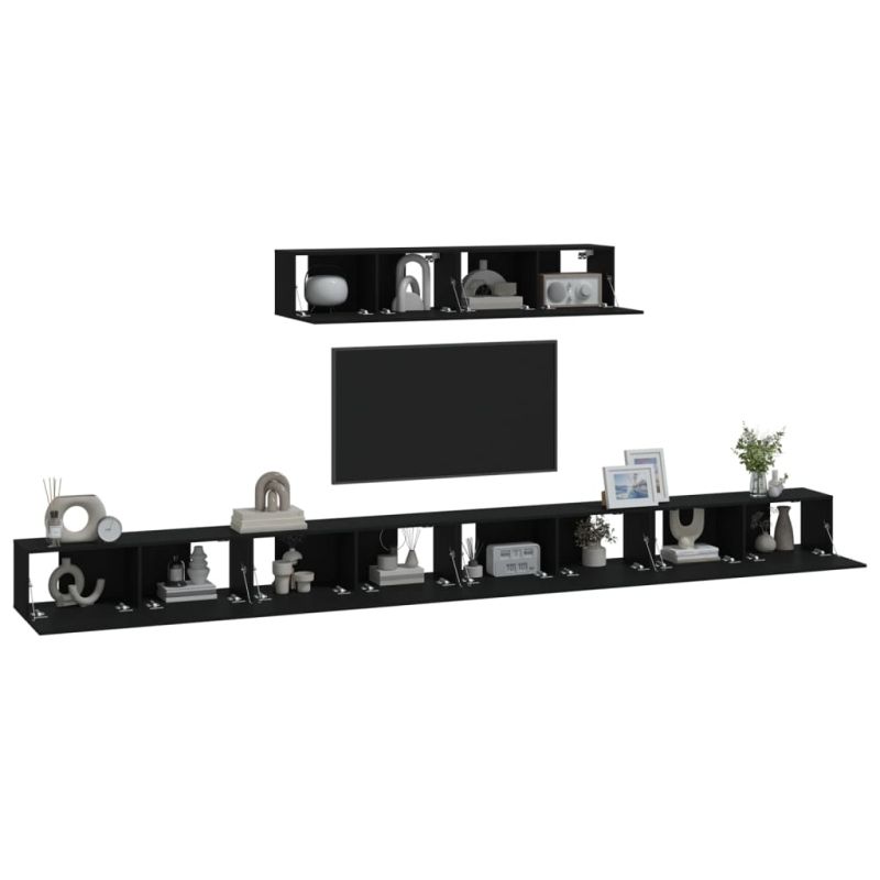 Комплект ТВ шкафове от 6 части, Черно, инженерно дърво