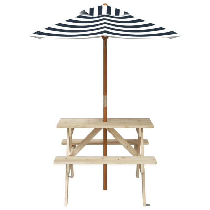 Пикник маса за 4 деца, с чадър, масивна чамова дървесина