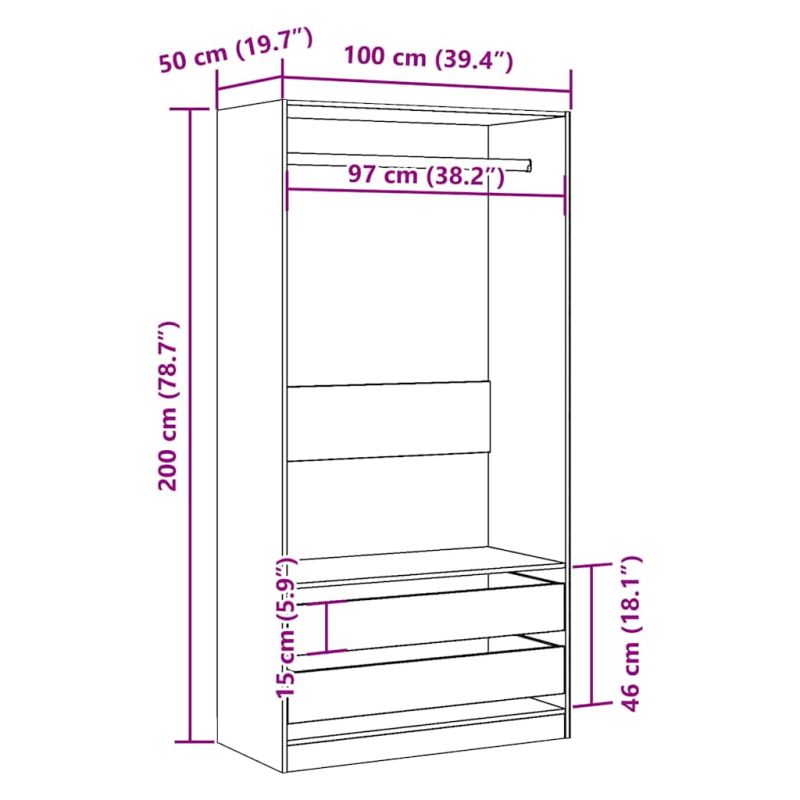 Гардероб, старо дърво, 100x50x200 см, инженерно дърво