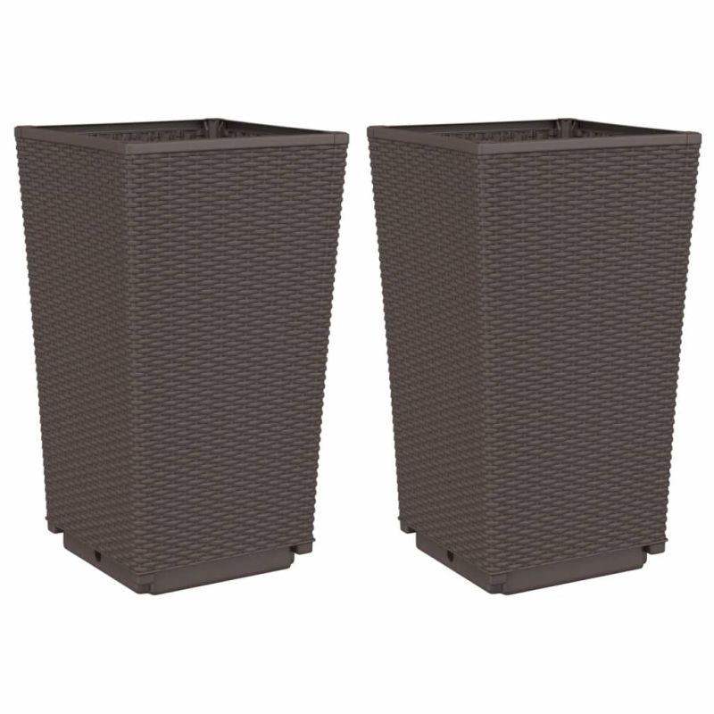 Градински кашпи, 2 бр, кафяви, 32,5x32,5x57 см, PP