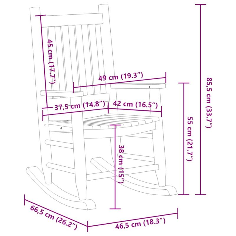 Удобен люлеещ се стол, който да придружава детето през спокойно и безгрижно време. Дълготраен и удобен: Люлеещият се стол разполага със здрава рамка, изработена от тополово дърво, което гарантира издръжливост. Неговото плавно, нежно люлеене осигурява успокояващ ефект, което позволява на децата да се отпуснат удобно.Лесен за почистване: Този люлеещ се стол има боя, което го прави водоустойчив, лесен за почистване и лесен за поддръжка.Безопасност: Специалният ъгъл на краката на стола и антидъмпинговият дизайн, получени от години опит, предпазват вашето дете от риска от преобръщане.Дизайн с летви: Люлеещият се стол разполага с дизайн с летви, който позволява на водата да оттича и да се вентилира.Широки приложения: Гъвкавият дизайн на люлеещия се стол позволява да бъде поставен навсякъде – от покрита веранда до вътрешен двор, градина, балкон или на закрито във всекидневната, осигурявайки на вашето дете удобно място за почивка и игра. Добре е да се знае:За да сте сигурни, че вашите външни мебели ще останат красиви, ви препоръчваме да ги защитите с водоустойчиво покривало. НЕ поставяйте този продукт в близост до прозорец, тъй като детето може да го използва като стъпало и да падне през прозореца; Съобразявайте се с риска от открит огън и други източници на силна топлина в близост до продукта; НЕ поставяйте този продукт в близост до прозорец, където шнуровете на щорите или завесите могат да задушат детето.