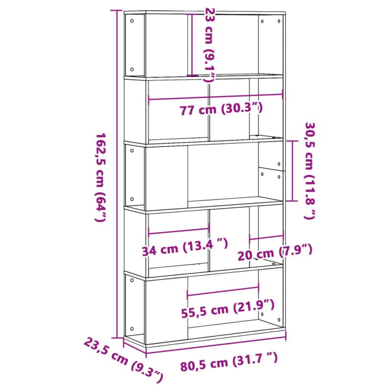 Създайте допълнително място за съхранение във вашия дом или офис с тази етажерка за книги! Можете да намерите перфектно място за всичките си съкровища. Стабилен и издръжлив материал: Инженерната дървесина е издръжлив и стабилен материал с гладка повърхност, която е устойчива на влага, изкривяване и разцепване, което я прави надежден избор за различни проекти.Просторно съхранение: Тази библиотека е проектирана с 5 отделения, предлагайки достатъчно място за съхранение на вашите колекции, книги, сувенири, рамкирани снимки и други декоративни предмети, добре организирани и достъпни.Лесна за поддръжка: Благодарение на гладката си повърхност, стелажът за книги се почиства лесно с влажна кърпа и изисква по-малко поддръжка.Дизайн с прегради: Дизайнът с прегради на всяко ниво ви позволява да разположите предметите си по по-организиран начин и да ги разпределите по категории.Универсален рафт: Етажерката за книги може да служи и като разделител на стая, което я прави перфектен избор за вашето жилищно пространство. Внимание:За да предотвратите преобръщане, този продукт трябва да се използва с предоставеното устройство за закрепване на стена. Добре е да се знае:Винтовете и дюбелите за вътрешната стена не са включени. Съветваме ви да намерите и използвате винтове и дюбели, подходящи специално за вашите стени. Ако не сте сигурни, можете да се консултирате с професионалист. Моля, прочетете и следвайте всяка стъпка от инструкциите.