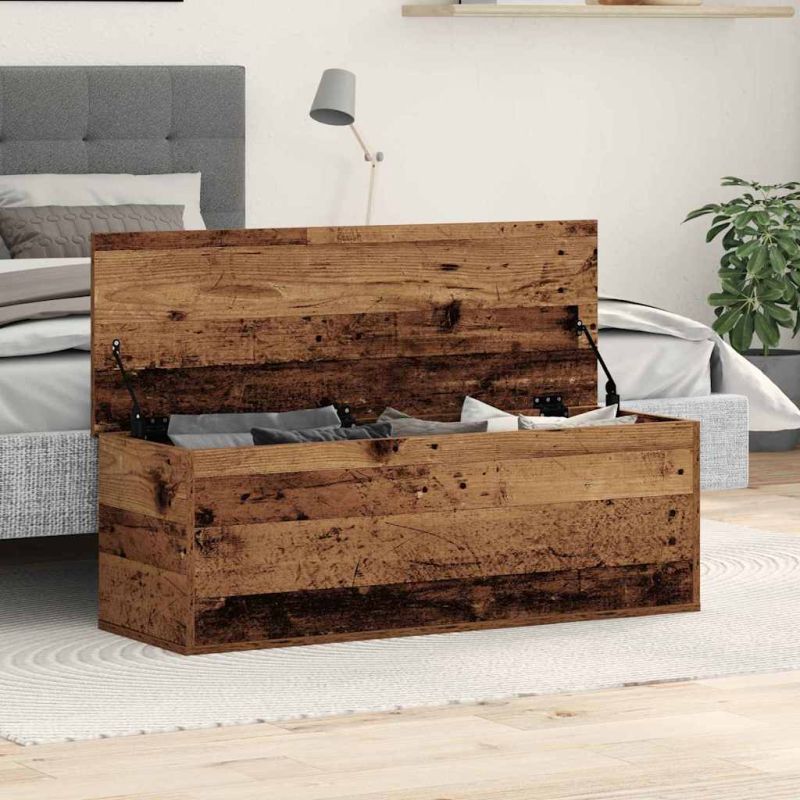 Начало Дом и градина Мебели Шкафове и решения за съхранение Сандъци за съхранение Кутия за съхранение със съхранение Старо дърво 102 x 35 x 35 cm