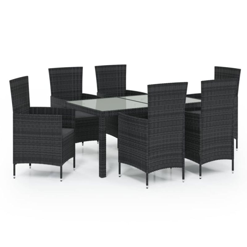 Градински комплект с възглавници, 7 части, полиратан, черен
