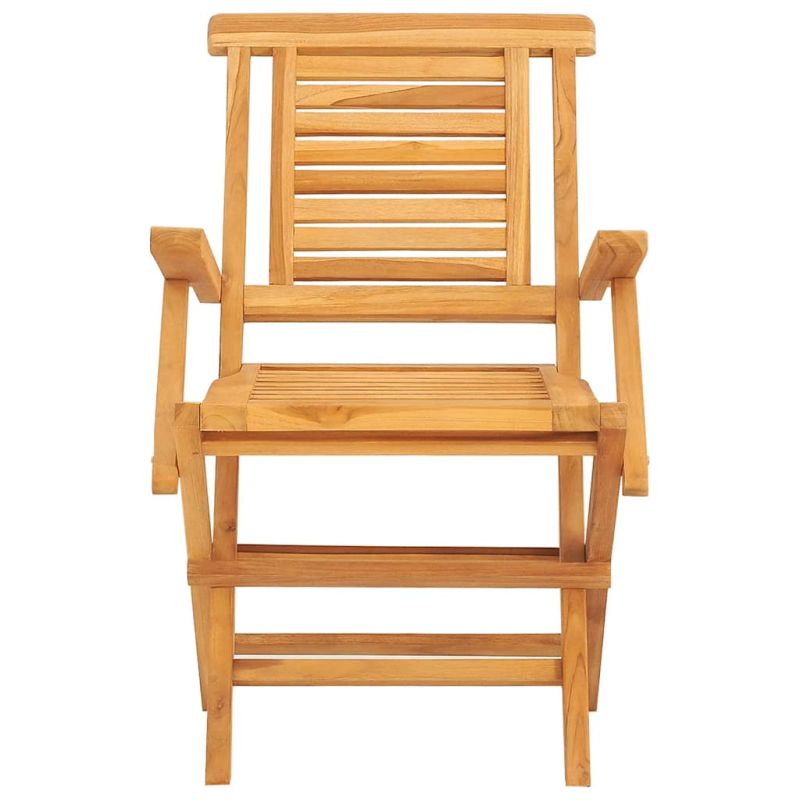 Насладете се на уютно свободно време със семейството и приятелите на открито на тези дървени сгъваеми градински столове! Масивна тикова дървесина: Масивната тикова дървесина е красив естествен материал. Тя е обветрена, изсушена в пещ и след това фино шлифована, за да ѝ се придаде много гладък вид. Тиковото дърво е известно със своята изключителна здравина и устойчивост на атмосферни влияния.Сгъваема функция: Градинският стол може да се сгъне, за да пести място, когато не се използва.Комфортно изживяване: Облегалката и подлакътниците на градинския стол ви осигуряват отлична опора и оптимално комфортно изживяване.Дизайн на летви: Външният стол с дизайн на летви изглежда семпъл и непреходен. Забележка:За да сте сигурни, че вашите външни мебели ще останат красиви, ви препоръчваме да ги защитите с водоустойчиво покривало.Добре е да се знае:За да бъде сглобяването възможно най-лесно, всеки продукт се доставя с ръководство. Максимално 110 кг на седалка.