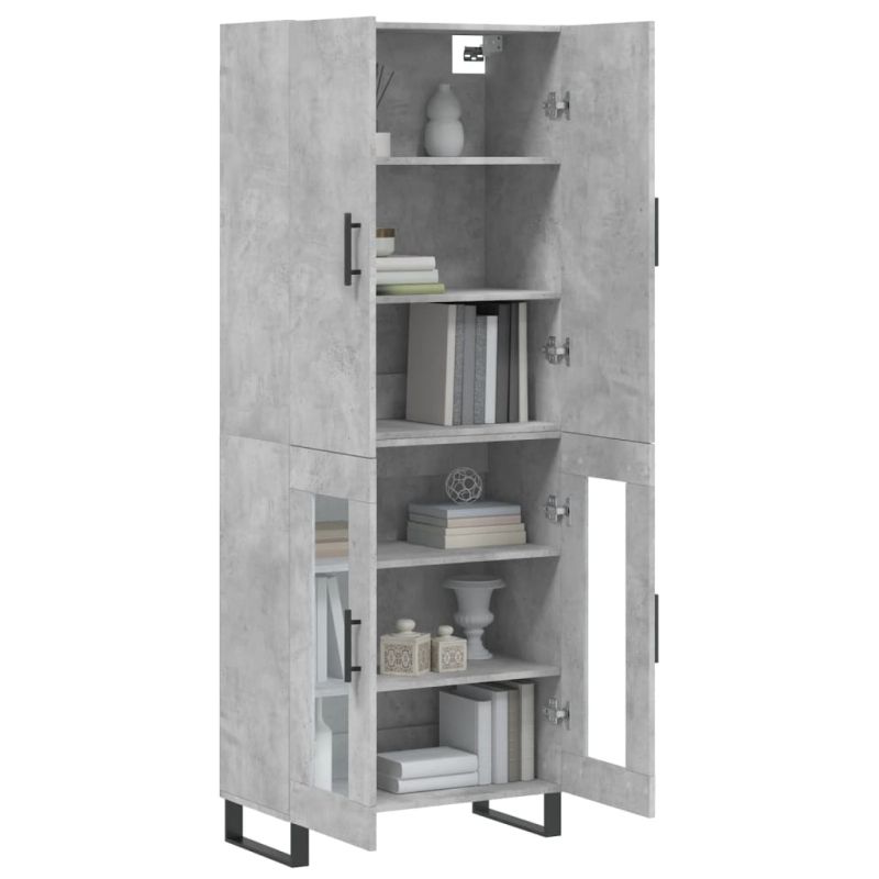 Висок шкаф, бетонно сив, 69,5x34x180 см, инженерно дърво
