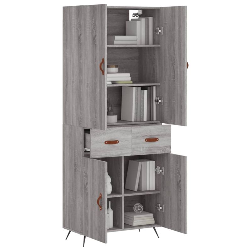 Висок шкаф, сив сонома, 69,5x34x180 см, инженерно дърво