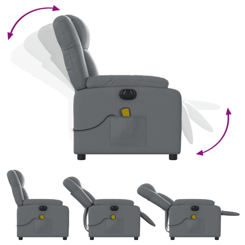 Електрически масажен реклайнер стол, сив, изкуствена кожа