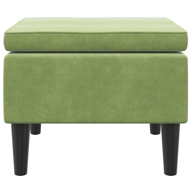 Табуретка с дървени крака, светлозелена, кадифе