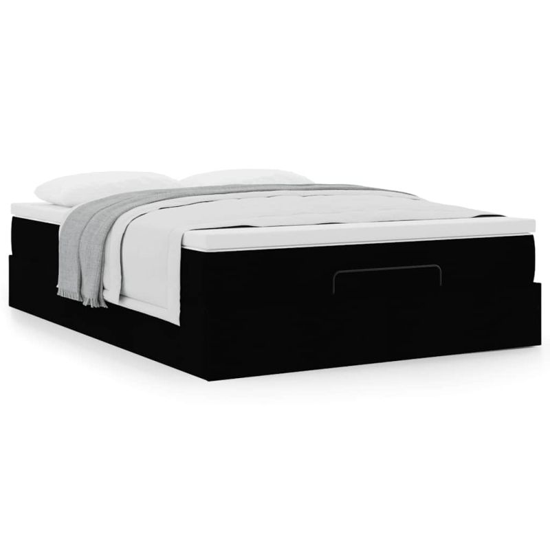Османска легло с матрак, черно, 140x200 см, плат