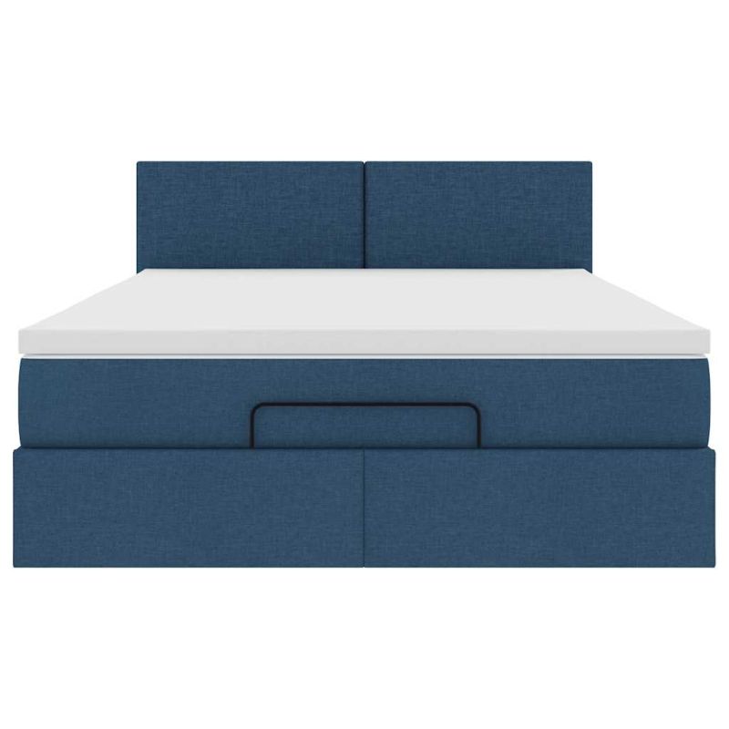 Османска легло с матрак и LED, синьо, 140x200 см, плат