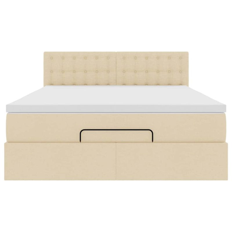 Османска легло с матрак и LED, кремаво, 140x200 см, плат