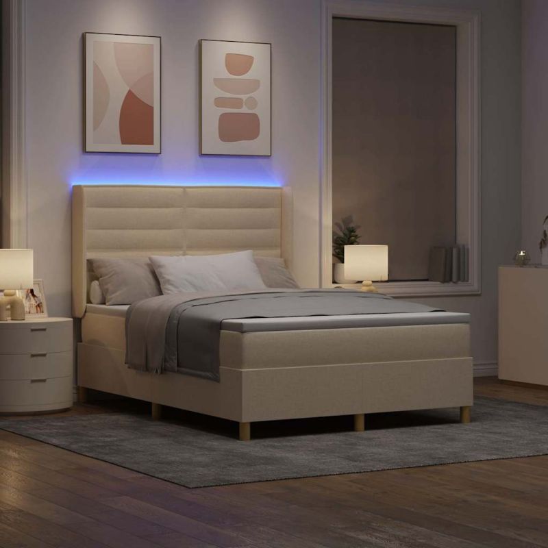 Легло с пружинирана основа с таблото Крем 140 x 200 cm текстил