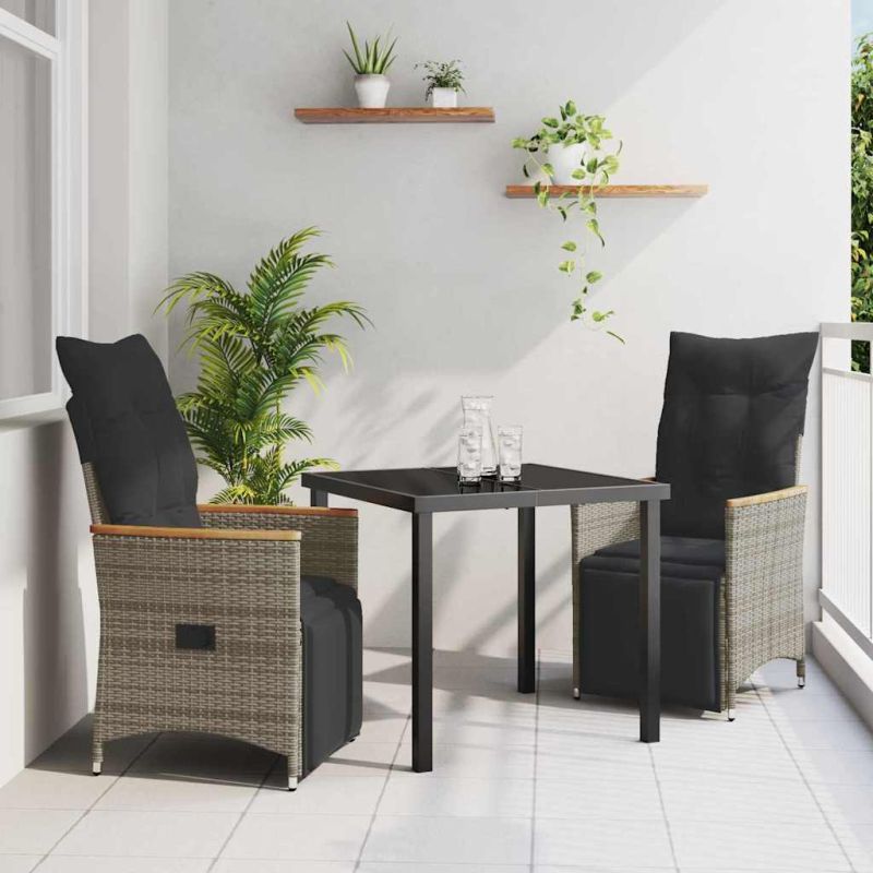 Този модерен комплект за хранене на открито е страхотно допълнение за всяко дворче или тераса. Със своя стил и практичност, той е проектиран за комфорт на открито. Строгите линии и минималистичният дизайн подчертават съвременния му вид, осигурявайки идеален баланс между форма и функция. Проектиран е да събира приятели или просто да предлага спокойствие и уют. Съвременен минималистичен дизайн Комплектът за хранене на открито има чист и минималистичен вид, с прахово боядисана стоманена основа и полиратанови повърхности. Изглежда стилно в откритите пространства, добавяйки модерна нотка. Прахово боядисана повърхност С устойчиво прахово покритие, стоманената част е защитена от времето. Благодарение на него, комплектът запазва свежия си вид дори под влиянието на елементите. Закалена стъклена повърхност Закаленото стъкло на масата добавя елегантност и е лесно за почистване. Силният му състав минимизира риска от счупвания, осигурявайки безопасно пространство за хранене. Регулируем комфорт Облегалките с множество позиции предлагат адаптиран комфорт, в зависимост от предпочитанията. Те лесно се настройват за максимално удобство. Лесни за почистване възглавници Сменяемите калъфи на седалките улесняват поддръжката. Те са проектирани да устоят на откритото и добавят комфорт, без да усложняват грижите.