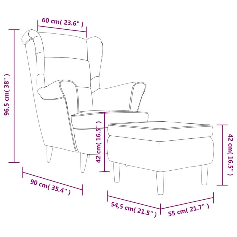 Фотьойл Wingback с табуретка, кафява, кадифе