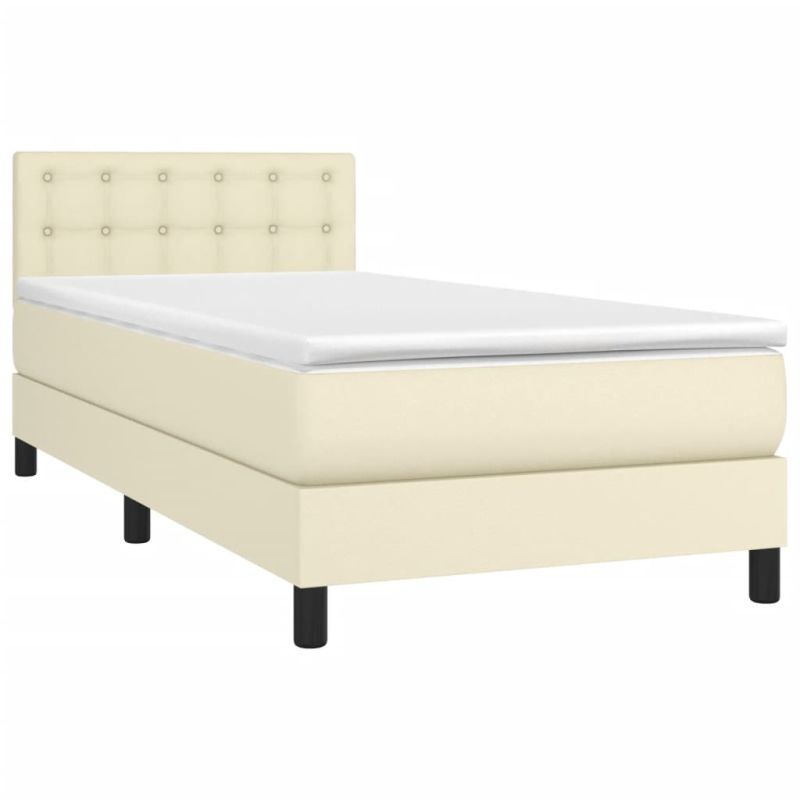 Боксспринг легло с матрак, кремаво, 90x200 см, изкуствена кожа