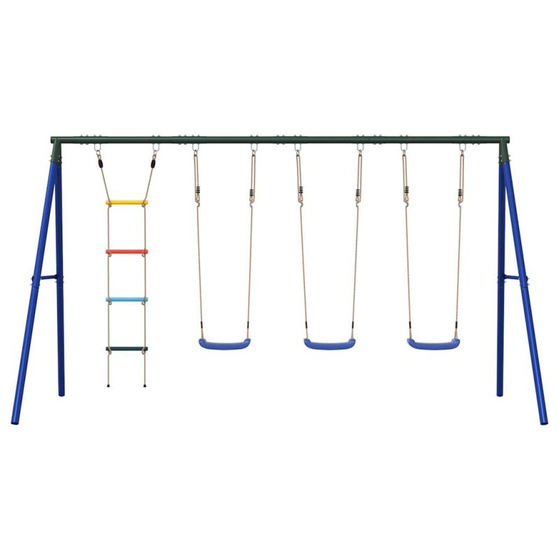 Превърнете градината си в детска площадка за вашите деца с тази външна люлка! Център за забавни дейности: Този комплект детски люлки включва 2 различни опции за игра с три люлки седалки и стълба за катерене. Така децата могат да се люлеят и катерят до насита.Издръжлива метална рамка: Тази рамка за люлка е изработена от боядисани стоманени тръби, които са устойчиви на ръжда, изключително здрави и устойчиви на деформация, осигурявайки отлична стабилност и издръжливост. А-образната структура предлага здрава опора без никакво колебание.Регулируема седалка за люлка: Тази градинска люлка е проектирана да расте с вашето дете, което я прави подходяща както за малки, така и за подрастващи деца. Чрез регулиране на дължината на въжето можете лесно да се приспособите към променящите се нужди на вашето дете.Многофункционални играчки за открито за деца: Тази градинска люлка помага на децата да подобрят своя баланс, координация, ловкост, сила и издръжливост, като същевременно предоставя различни начини за игра и упражнения.Широки приложения: Тази рамка за люлка може да се постави на различни места като градини, задни дворове, детски градини, детски площадки и др. Добре е да се знае:С оглед на безопасността всяка люлка трябва да се използва само от едно дете.