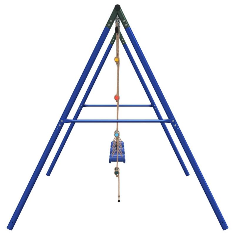 Превърнете градината си в детска площадка за вашите деца с тази външна люлка! Център за забавни дейности: Този комплект детски люлки включва 2 различни опции за игра с три люлки седалки и стълба за катерене. Така децата могат да се люлеят и катерят до насита.Издръжлива метална рамка: Тази рамка за люлка е изработена от боядисани стоманени тръби, които са устойчиви на ръжда, изключително здрави и устойчиви на деформация, осигурявайки отлична стабилност и издръжливост. А-образната структура предлага здрава опора без никакво колебание.Регулируема седалка за люлка: Тази градинска люлка е проектирана да расте с вашето дете, което я прави подходяща както за малки, така и за подрастващи деца. Чрез регулиране на дължината на въжето можете лесно да се приспособите към променящите се нужди на вашето дете.Многофункционални играчки за открито за деца: Тази градинска люлка помага на децата да подобрят своя баланс, координация, ловкост, сила и издръжливост, като същевременно предоставя различни начини за игра и упражнения.Широки приложения: Тази рамка за люлка може да се постави на различни места като градини, задни дворове, детски градини, детски площадки и др. Добре е да се знае:С оглед на безопасността всяка люлка трябва да се използва само от едно дете. Предупреждение. Не е подходящ за деца под 3 години. Само за домашна употреба. GPSR