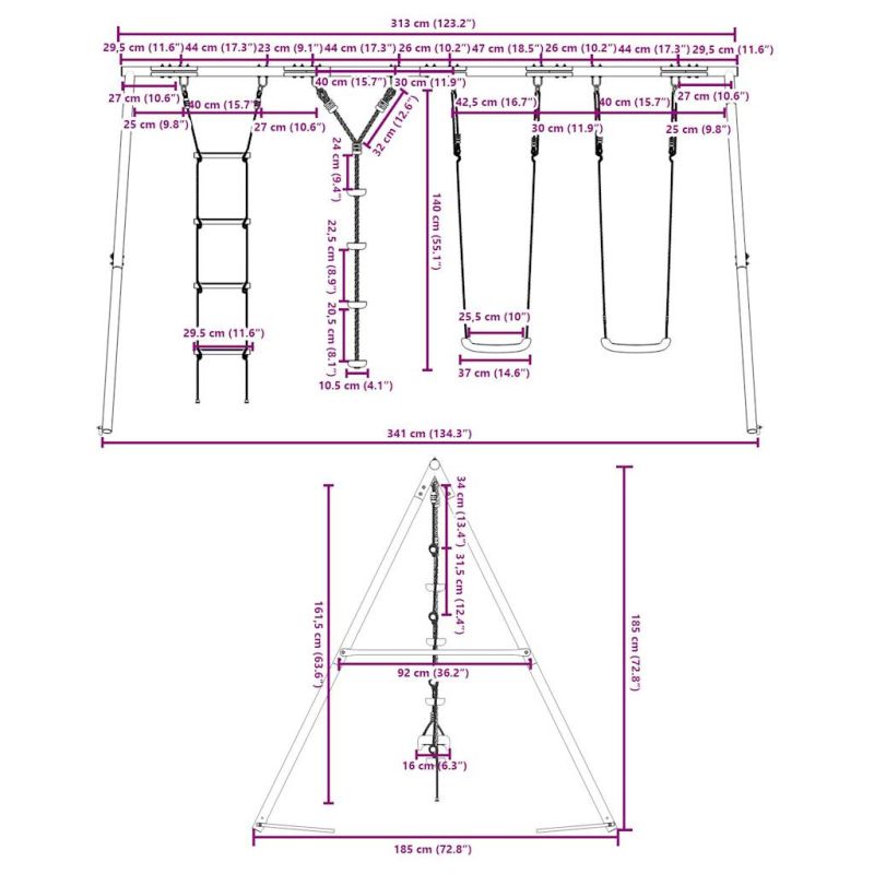Превърнете градината си в детска площадка за вашите деца с тази външна люлка! Център за забавни дейности: Този комплект детски люлки включва 3 различни опции за игра с две люлки седалки, люлка с дискове и стълба за катерене. Така децата могат да се люлеят и катерят до насита.Издръжлива метална рамка: Тази рамка за люлка е изработена от боядисани стоманени тръби, които са устойчиви на ръжда, изключително здрави и устойчиви на деформация, осигурявайки отлична стабилност и издръжливост. А-образната структура предлага здрава опора без никакво колебание.Регулируема седалка за люлка: Тази градинска люлка е проектирана да расте с вашето дете, което я прави подходяща както за малки, така и за подрастващи деца. Чрез регулиране на дължината на въжето можете лесно да се приспособите към променящите се нужди на вашето дете.Многофункционални играчки за открито за деца: Тази градинска люлка помага на децата да подобрят своя баланс, координация, ловкост, сила и издръжливост, като същевременно предоставя различни начини за игра и упражнения.Широки приложения: Тази рамка за люлка може да се постави на различни места като градини, задни дворове, детски градини, детски площадки и др. Добре е да се знае:С оглед на безопасността всяка люлка трябва да се използва само от едно дете. Предупреждение. Не е подходящ за деца под 3 години. Само за домашна употреба. GPSR