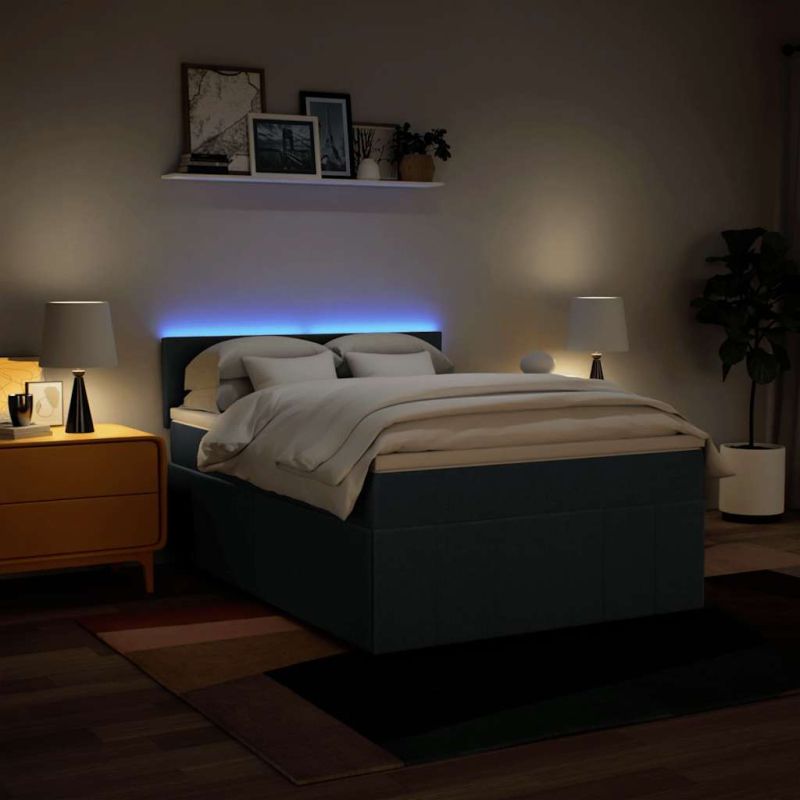 Използвайте това боксспринг легло, за да се насладите на спокоен сън! Предлага ви максимален релакс и приятен сън. Мека и издръжлива материя: Полиестерната материя съчетава мекота, дишане и издръжливост, като ви гарантира максимален комфорт и уют.Матрак с джоб пружини: Този матрак с джоб пружини има индивидуални пружини с джобчета, които работят независимо, за да осигурят персонализирана опора, като реагират само на натиска във всяка област. Този дизайн предотвратява "свличането" към средата на матрака и намалява прехвърлянето на движение в сравнение с традиционните матраци с отворени намотки. Всяка покет пружина поддържа тялото индивидуално.LED светлини за приятна атмосфера: Това легло разполага с LED светлини, които могат лесно да се регулират, за да се създаде персонализирано светлинно шоу. Можете да персонализирате режимите, цветовете и яркостта, за да подобрите атмосферата на вашето вътрешно пространство.Удобен горен матрак: Този топ матрак подобрява опората и комфорта със своята мека, дишаща повърхност, като същевременно удължава живота на вашия матрак. Подвижният му калъф позволява лесно изпиране, което прави поддръжката лесна. Добре е да се знае:Продуктът има USB конектор, който изисква сертифициран 5V USB захранващ източник (не е включен).От хигиенни съображения матракът не може да бъде върнат, ако опаковката е отстранена или отворена.Само частта със символ на ножица може да бъде изрязана и само частта с USB ще продължи да функционира както преди.