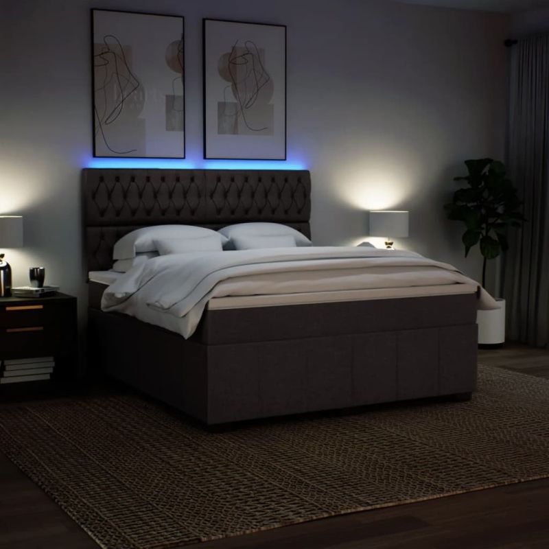 Боксспринг легло с матрак, тъмнокафяво, 180x200 см, плат