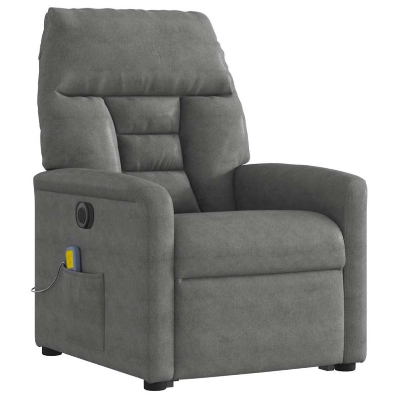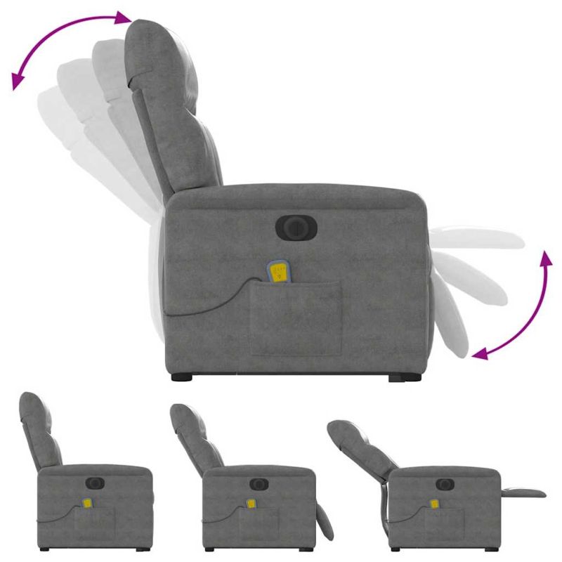 Електрически изправящ масажен реклайнер, тъмносив, микрофибър