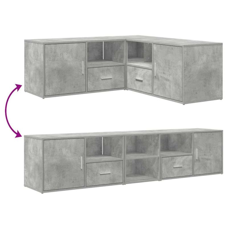 Този ъглов шкаф с практичен дизайн е истински акцент за вашия домашен интериор. Издръжлив материал: Инженерната дървесина е с изключително качество с гладка повърхност и също така се отличава със здравина, стабилност и устойчивост на влага.2 начина на сглобяване: Този ъглов рафт може да се сглоби или в по-широк шкаф, или в L-образен ъглов шкаф, за да отговаря перфектно на вашите изисквания за пространство и съхранение.Достатъчно място за съхранение: Шкафът с отделения и чекмеджета предоставя достатъчно място за съхранение, където да държите различни ваши вещи добре организирани и леснодостъпни.Здрав плот: Шкафът за декорации има здрав плот, върху който можете да поставите вашите декоративни елементи, фотоалбуми или малки растения.Лесна за поддръжка: Благодарение на гладката си повърхност, ъгловият модул се почиства лесно с влажна кърпа и изисква по-малко поддръжка.
