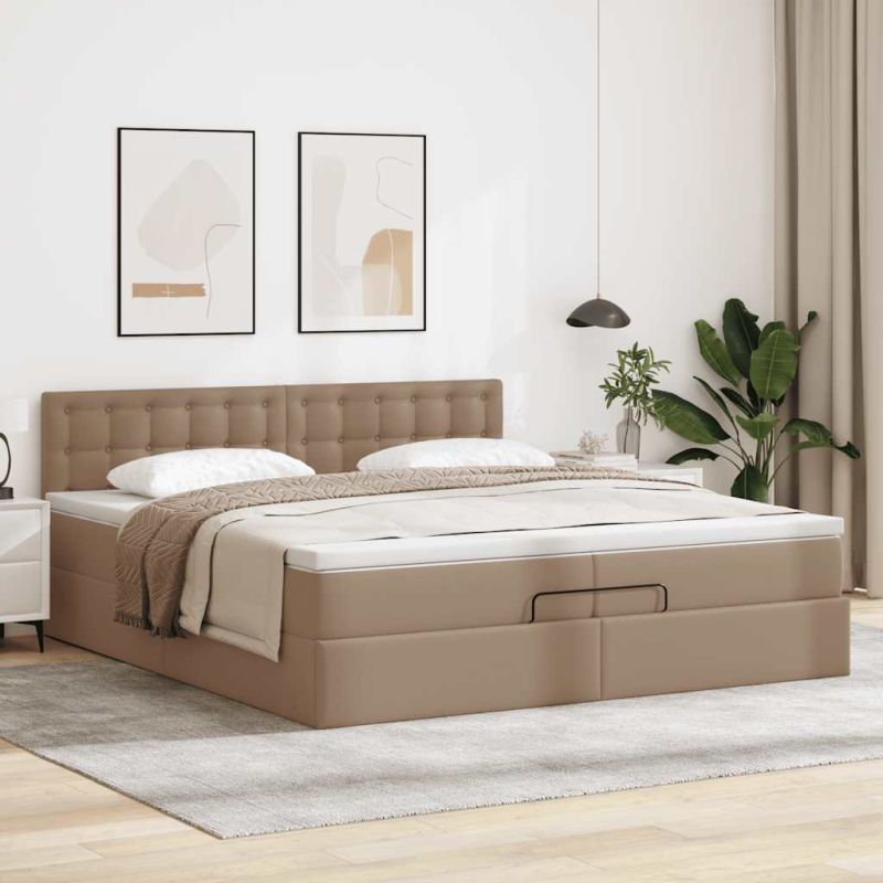 Османска легло с матраци&LED капучино 200x200см изкуствена кожа