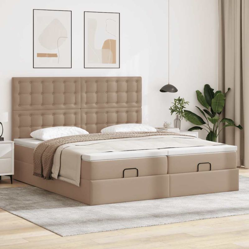 Османска легло с матраци&LED капучино 200x200см изкуствена кожа