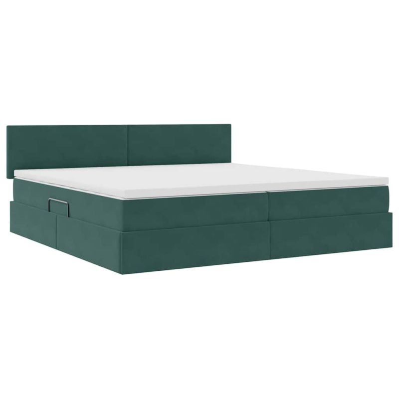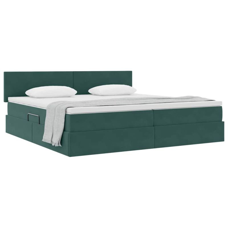Легло с място за съхранение Тъмен зелен 200 x 200 cm Кадифе