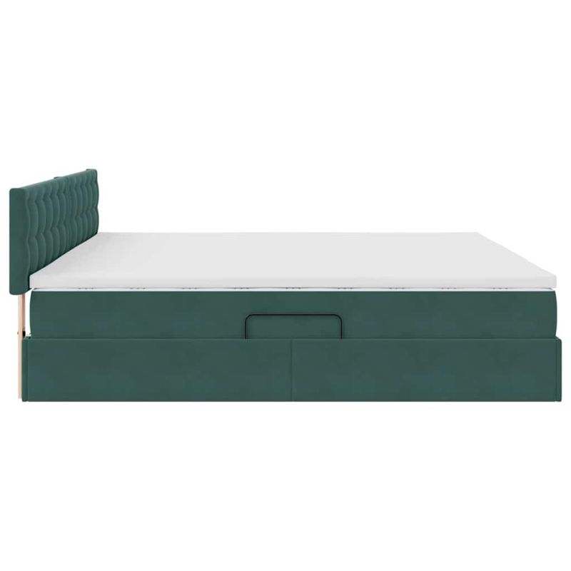 Легло с място за съхранение и LED Тъмен зелен 200 x 200 cm
