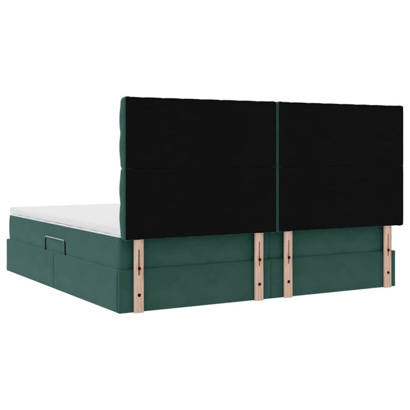 Легло с място за съхранение и LED Тъмен зелен 200 x 200 cm
