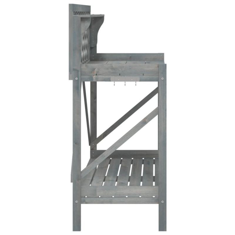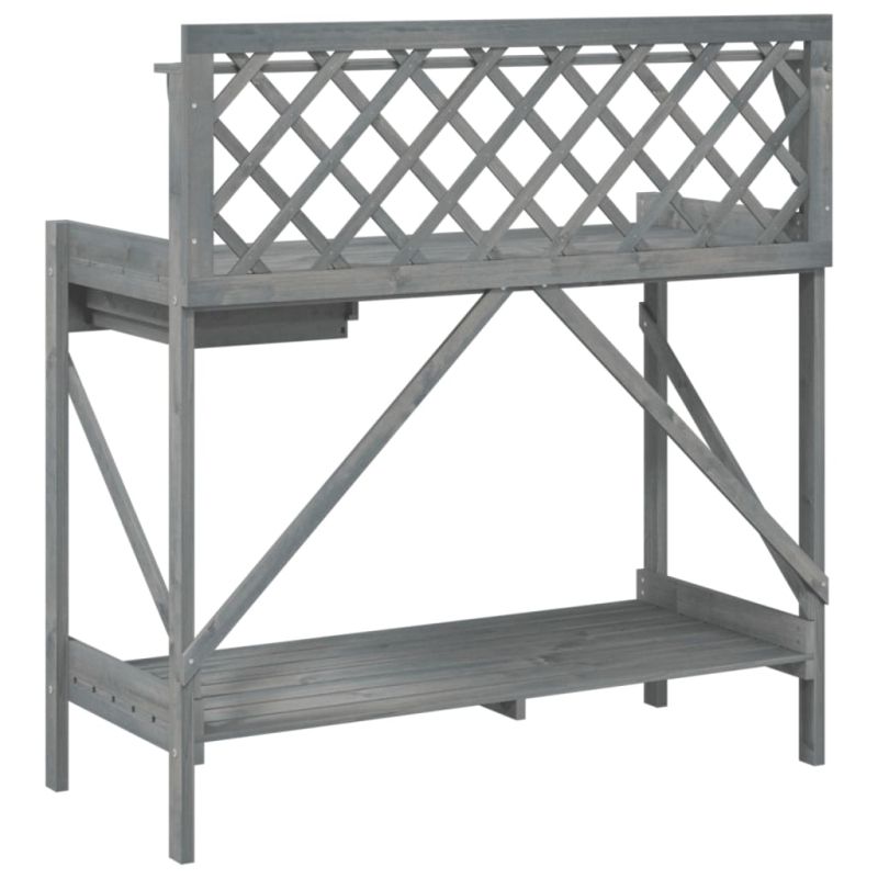 Тази маса за разсаждане е идеална за нареждане и излагане саксийни растения на видно място в дома, градината, двора или на терасата. Издръжлива и здрава: Тази маса за разсаждане е изработена от масивна ела, което я прави издръжлива и дълготрайна. Функционално пространство за съхранение: Работната маса за саксии с отворени рафтове, горна релса, метални куки отстрани и чекмедже осигурява достатъчно място за свързани стоки като малки градински инструменти, почва, торове и др.Декорации: Пейката за саксии има пергола, която осигурява пространство за израстване нагоре за увивни растения. Междувременно перголата с диамантена решетка е подходяща за окачване на растения в кошници или декорации, за да украсите градината си.Вентилирана: Този долен рафт с дизайн на ламели може да позволи на водата да тече, което не позволява лесно гниене и има дълъг експлоатационен живот.Множество приложения: Градинската маса за разсаждане може не само да внесе усещане за природа във вашето пространство, но също така може да бъде идеално допълнение към вашия двор, градина, оранжерия и др. Добре е да се знае:За да сте сигурни, че вашите външни мебели ще останат красиви, ви препоръчваме да ги защитите с водоустойчиво покривало. Внимание:За да предотвратите преобръщане, този продукт трябва да се използва с предоставеното устройство за закрепване на стена.
