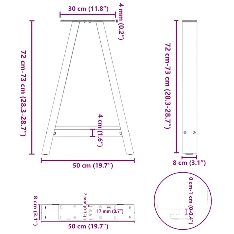 Тези крака за трапезарна маса съчетават форма и функция. Идеален избор за персонализиране на вашата трапезарна маса.Издръжлив материал: Този крак за трапезарна маса е изработен от прахово боядисана стомана, което го прави здрав и дълготраен.Здрава конструкция: А-образният дизайн на крака за трапезарна маса гарантира, че той може да поддържа тежък плот.Практичен дизайн: Този крак за трапезарна маса включва регулируеми нивелири, осигуряващи стабилност дори на неравни подове и минимизиращи драскотините по пода. Освен това, скобата е с предварително пробити отвори и включени в доставката винтове, които могат да се използват за закрепване на крака към плота на масата (не са включени), което улеснява сглобяването.Модерна естетика: Кракът на масата има изчистени линии и геометричен дизайн, за да подобри цялостния вид на мебелите. И се съчетава добре с всеки плот на маса с подходящ размер.Полезно е да знаете:Доставката съдържа само крака за маса, плотът на масата не е включен.