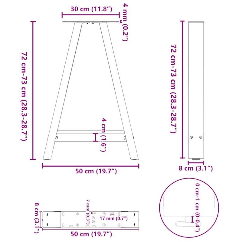 Крака за трапезарна маса, А-образни, 2 бр., 50 x (72-73) см, стомана
