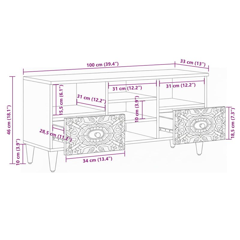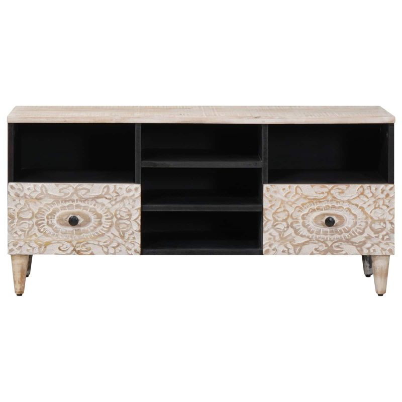 ТВ шкаф с рафт Бяло 100 x 33,5 x 46 см Солидно мангово дърво