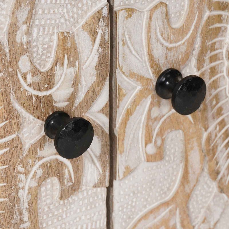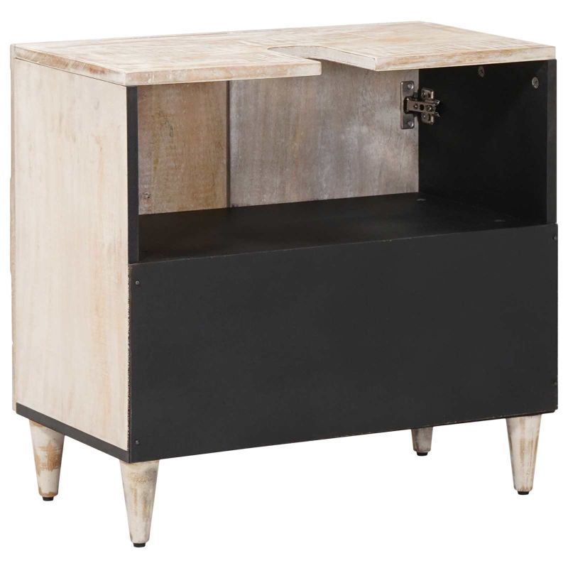 Шкаф за мивка в баня Бяло 62 x 33 x 58 см Солидно мангово дърво