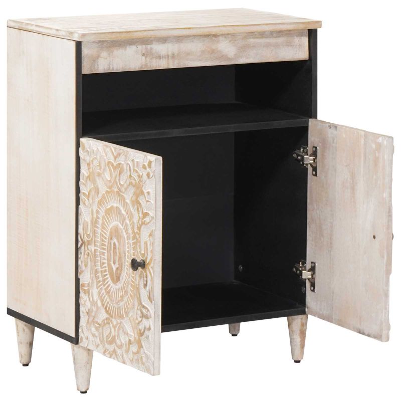 Служебен шкаф Бяло 60 x 33,5 x 75 см Солидно мангово дърво