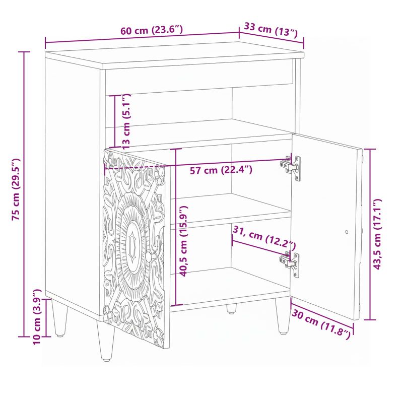 • Общи размери: 60 x 33,5 x 75 см (Д x Ш x В)
